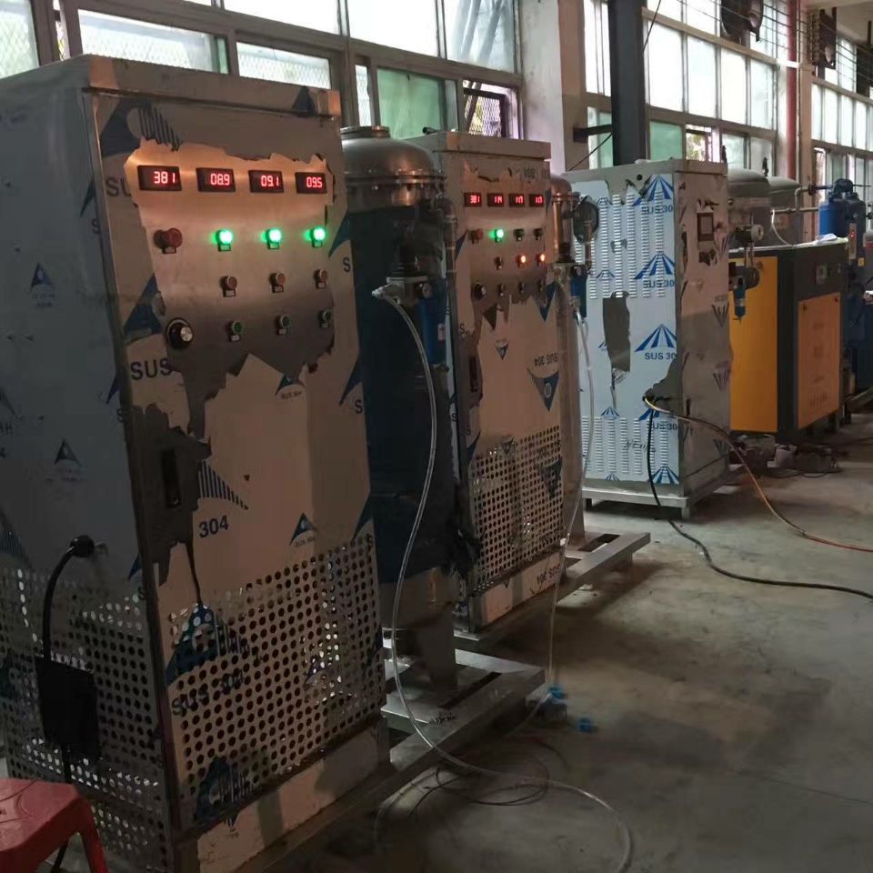 此套大型臭氧發(fā)生器分氣源,臭氧主機及水冷系統(tǒng)三部分,包括臭氧機,螺桿空壓機,冷干機,吸附干燥機,儲氣罐,油水分離器,精密過濾器,換熱器,冷卻水泵,冷水箱等配置。這兩套公斤級臭氧發(fā)生器由吉林某環(huán)保公司采購,經(jīng)調試安裝合格后發(fā)往吉林,用于機場凈水項目處理。